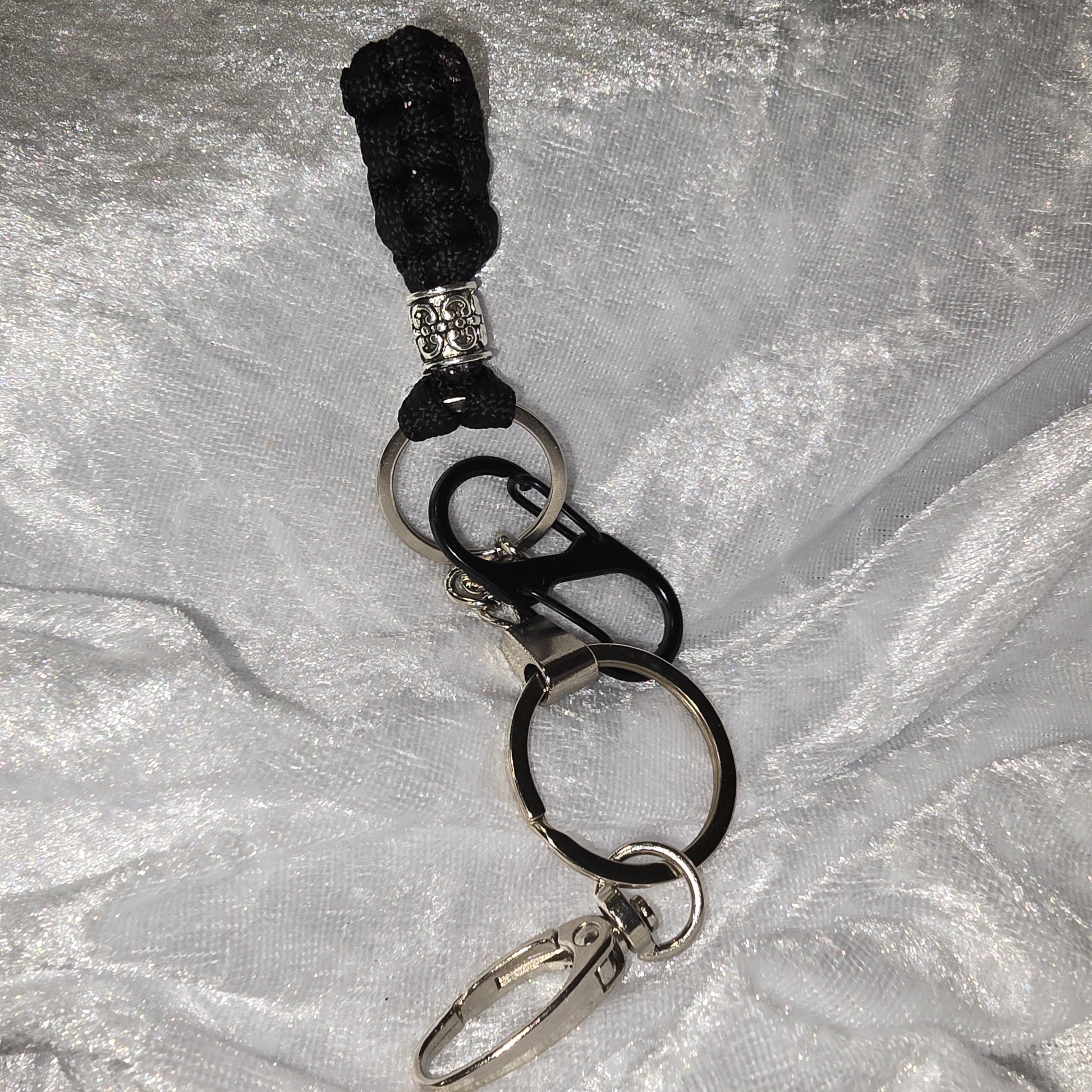 High quality paracord key ring made from 4mm Paracord. This Key ring is Cobra Weave with a Carabiner.
